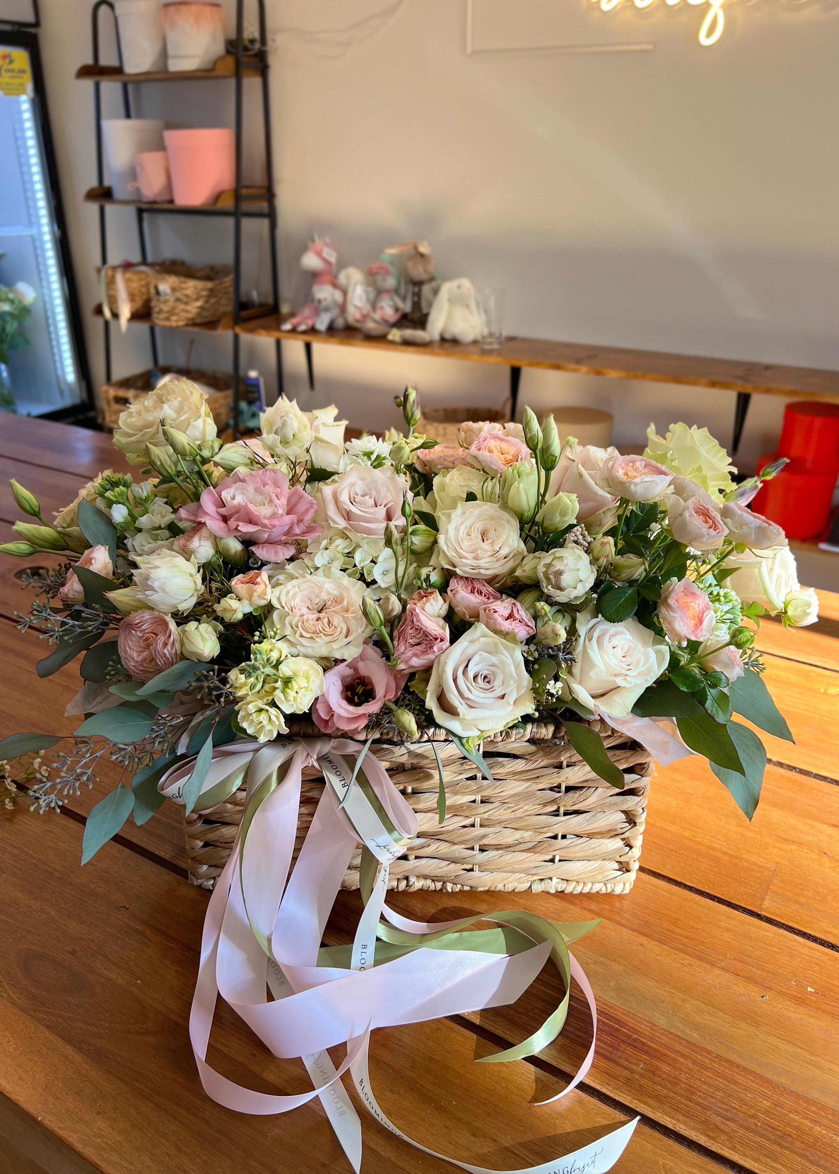 Indulge in our Luxe Floral Arrangement, a breathtaking bouquet that features four types of roses, charming garden roses, elegant hydrangea, delightful waxflower, immersive mateola, and lush greenery, balanced with the unique textures of eucalyptus, statice, and amaranthus. This stunning arrangement is perfect for any special occasion—be it weddings, anniversaries, or simply a thoughtful gift. Every bloom is meticulously selected for freshness and vibrant colors, ensuring a captivating centerpiece that enchants any space. Present this exquisite floral display to a loved one or treat yourself to a burst of natural beauty. Order now to elevate your gifting experience with our luxurious bouquet!