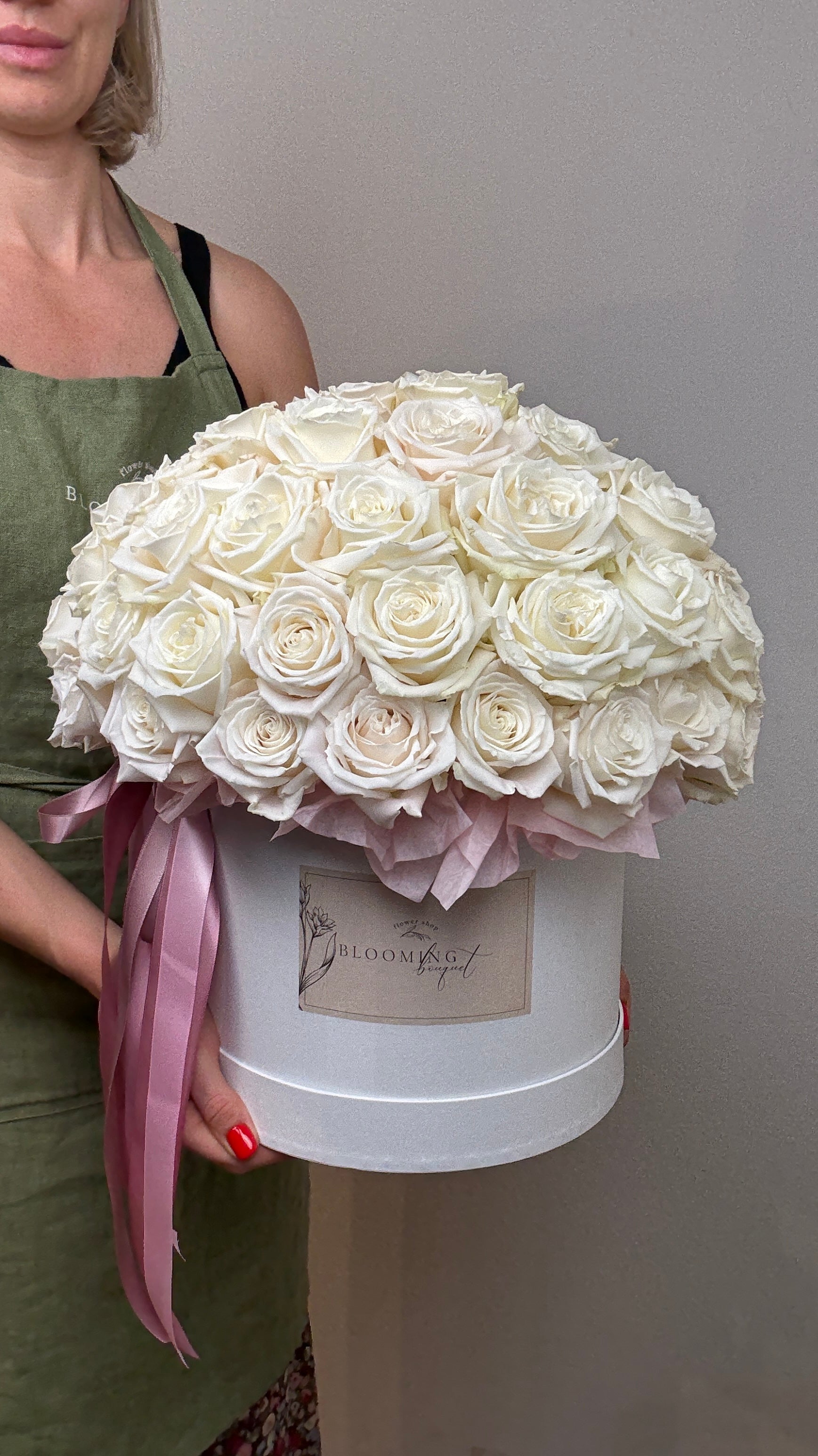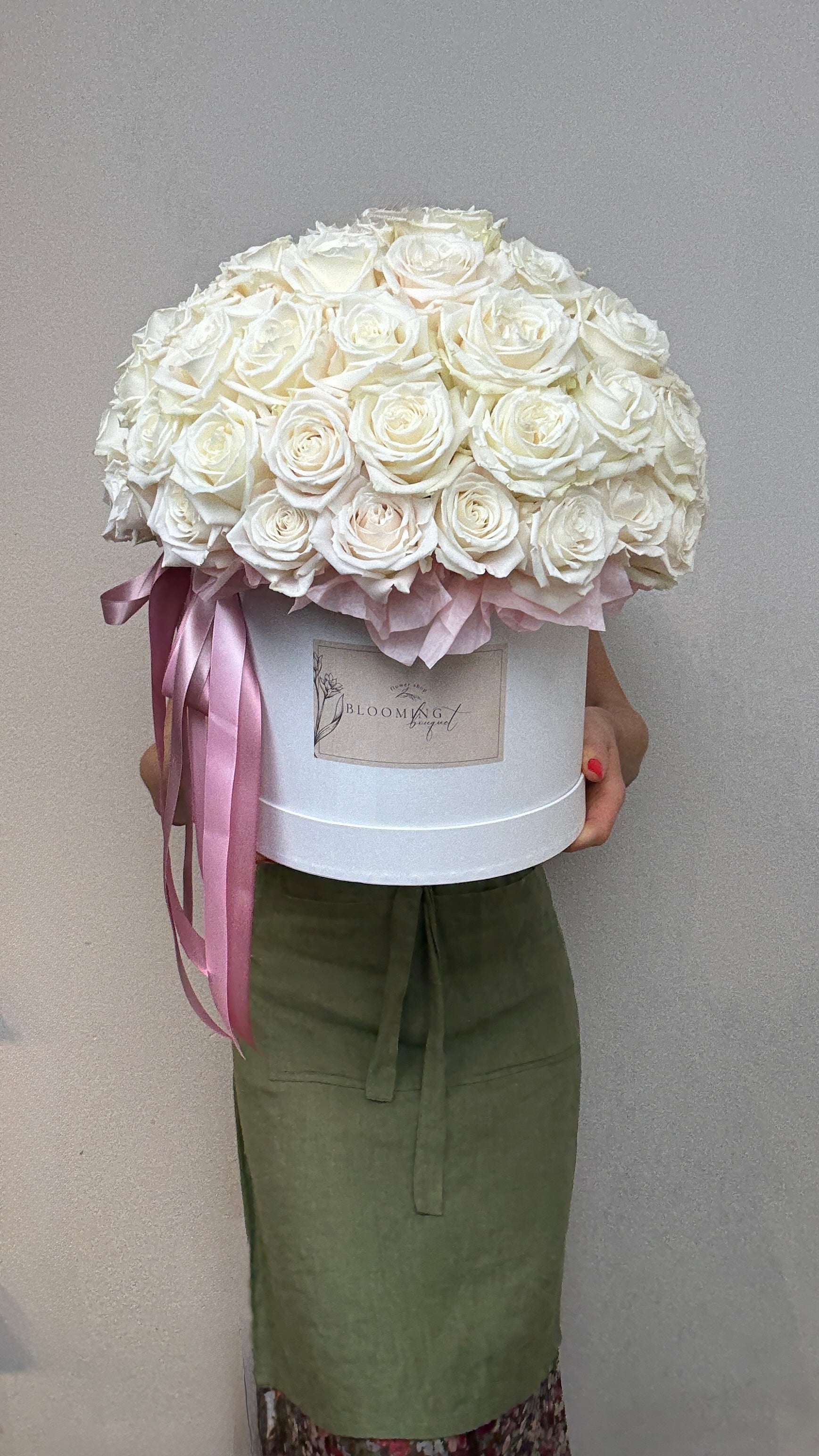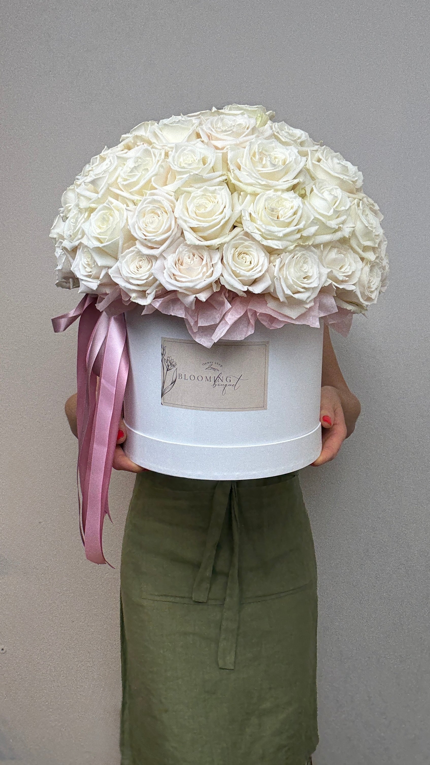 Luxurious white Rose Box – Elegant Floral Arrangement