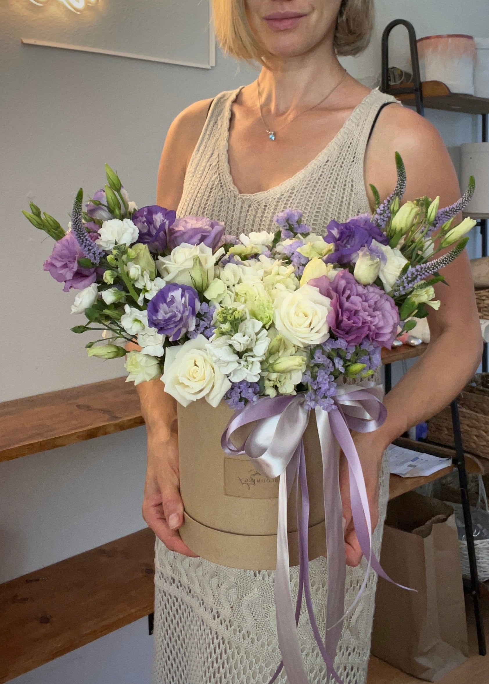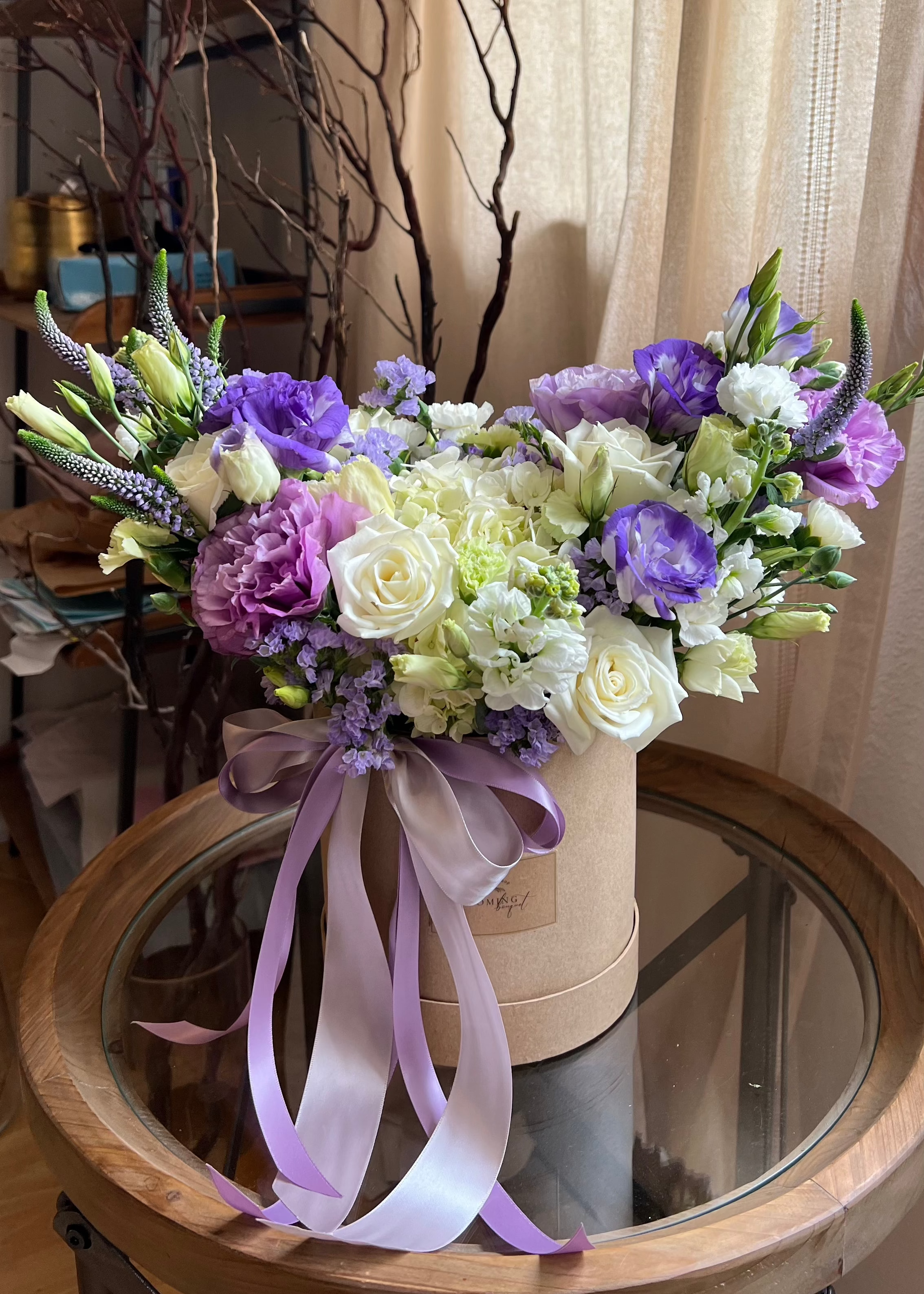 Include: Hydrangea, Roses, Lisianthus, Carnation, and Matthiola